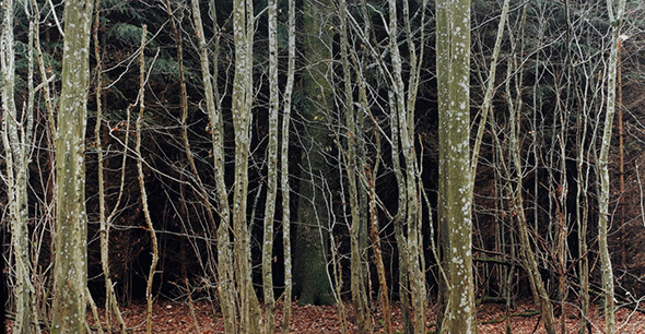 埃里克就生活在這樣一座古戰場的茂密森林裡,所以他說:「影像讓我與樹木、人或是動物,即使是死去的,建立起一種關係。」而作品就來自他的日常起居,藉由林野、藤蔓、枯草來呈現大自然在時間消逝裡的美麗與哀愁。