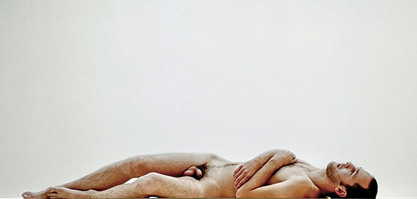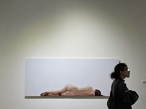 而這幅「人體風景」的大型作品,直接將地板切除,讓身軀攤在底部,甚至裁去部份肌膚,現場的影像極為震撼,又是另一種神級的框架處理手法。(再次跪拜)