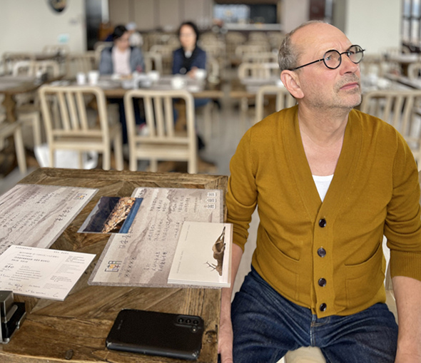 那天在埃里克下榻的GAYA渡假酒店遇見大師,我送上親自拍攝的台東巿區遠眺(剛好就在GAYA拍攝)。他超開心,立刻簽名回贈一張此次展覽的精美明信片,瞬間我雀躍如鳥……猶如 20 年前,首次看到埃里克的作品那般。